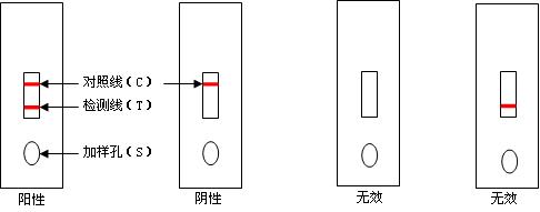 4. 失效:在观察孔内,对照线区(C)和检测线区(T)都无明显条带出现;或仅检测线区(T)出现色线。